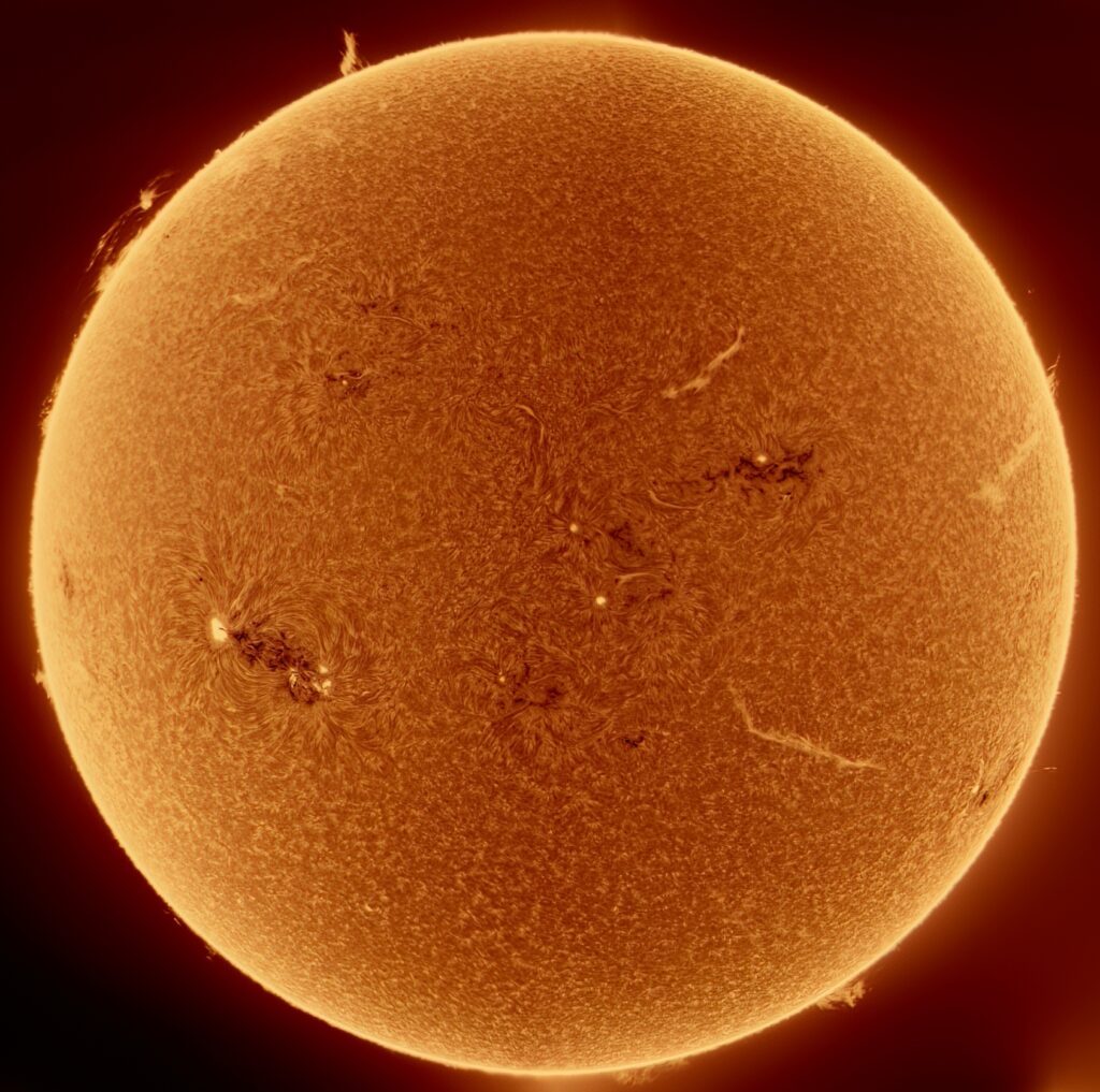 I have had a couple really nice weeks of sunshine, and have been able to image the Sun with the SR127. I am surprised, as this time of year is usually rainy here, plus the Sun is low in the sky, and seeing was good. I have really enjoyed using the SR127. Attached below are eight recent images. What do you think? Clear skies, David T